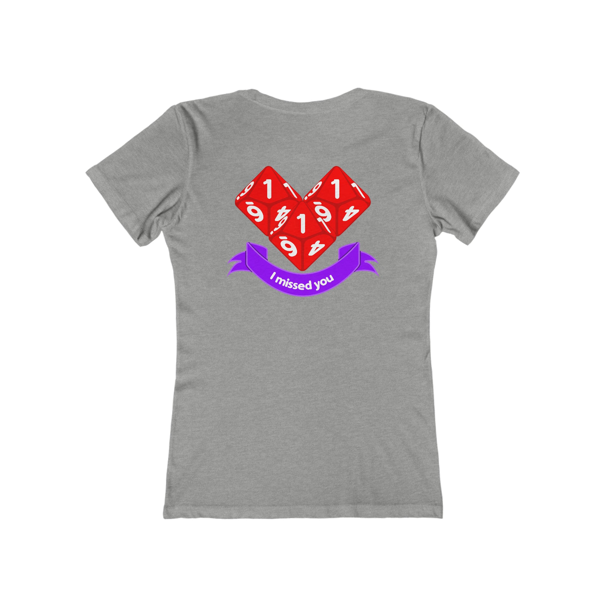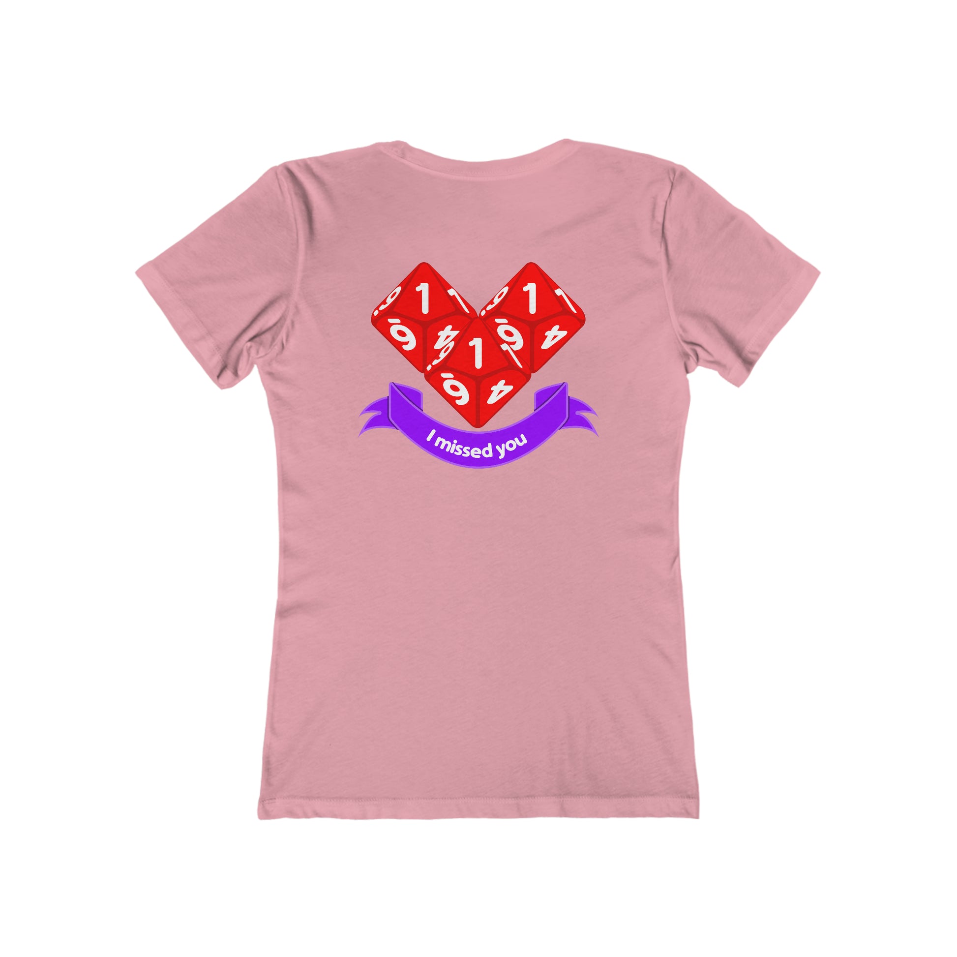 This fun loving valentine's day RPG dice design is great for you or your loved one. On the front it has 3 D10 showing 0's meaning your made a hit and says I'm hitting on your. On the back it has the D10's showing 1's meaning a miss and says I missed you. This fun themed design is great no matter if your walking towards someone or away from them.