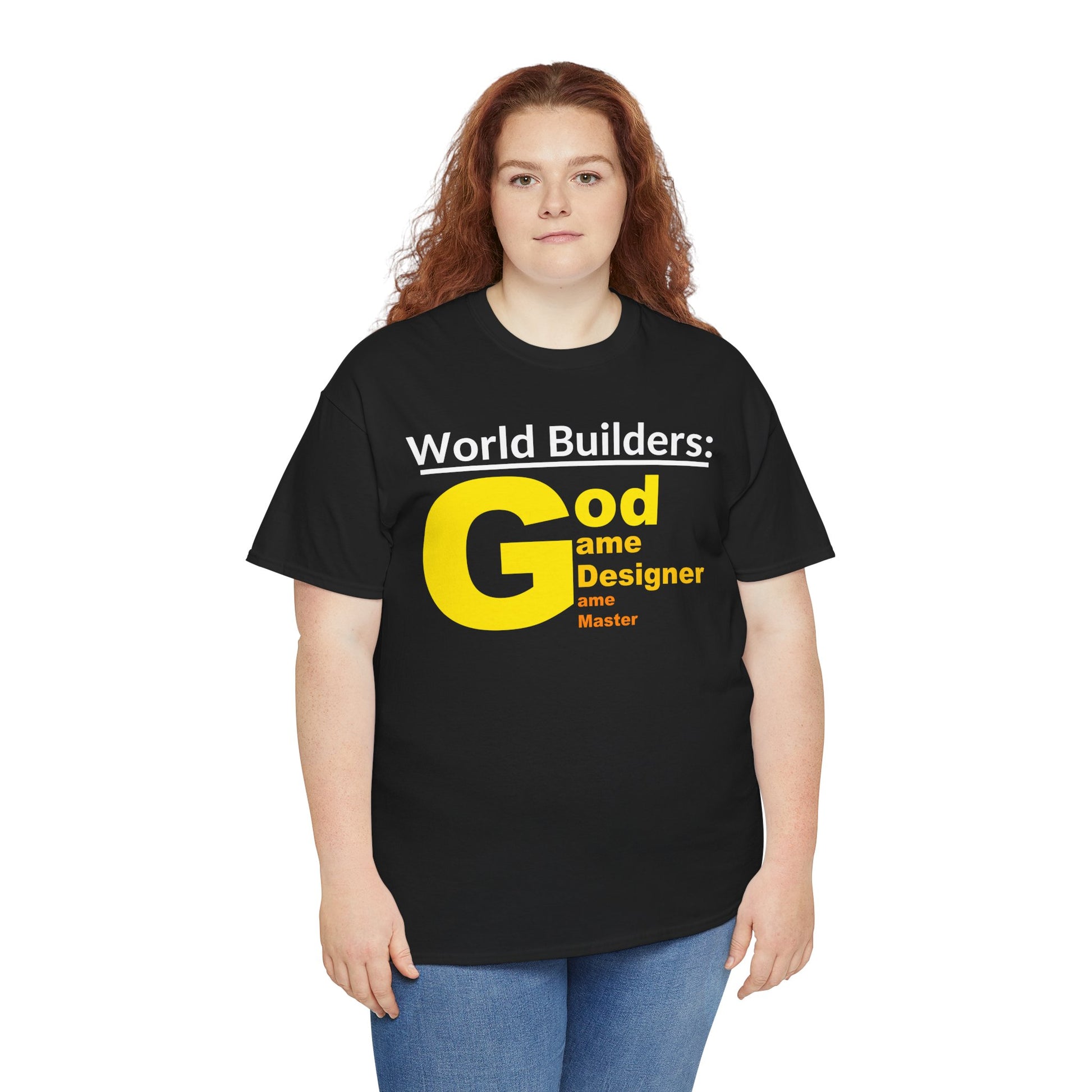 A fun t-shirt showing the different types of world builders and where they stand in the rankings.